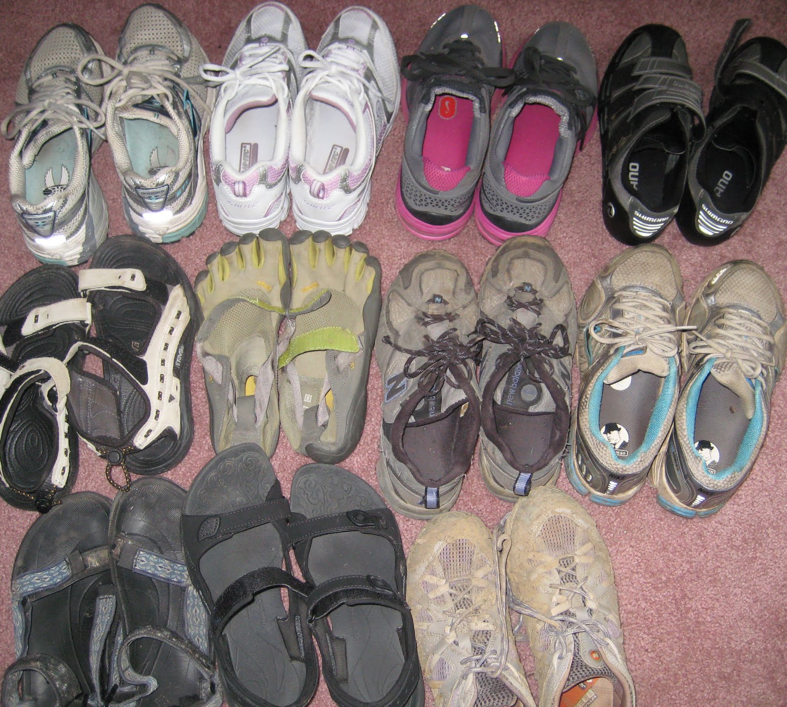 Finally, there are some shoes I tried out as running shoes, but they just didn't make the cut. They are nice and clean, so I wear them when I'm with clients. And everyone needs a selection of comfy sports sandals that can also get wet. You can throw them on with shorts or capris. They are nice and cool for summer.